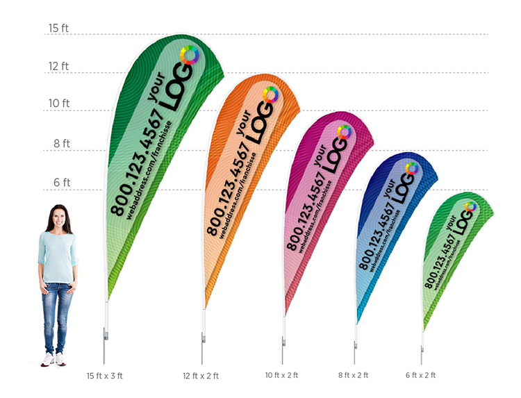 Single sided teardrop flags are printed on one side. This means that your artwork will be slightly visible from the backside. Single sided teardrop flags are not as effective as double-sided ones but are available for a lower price.